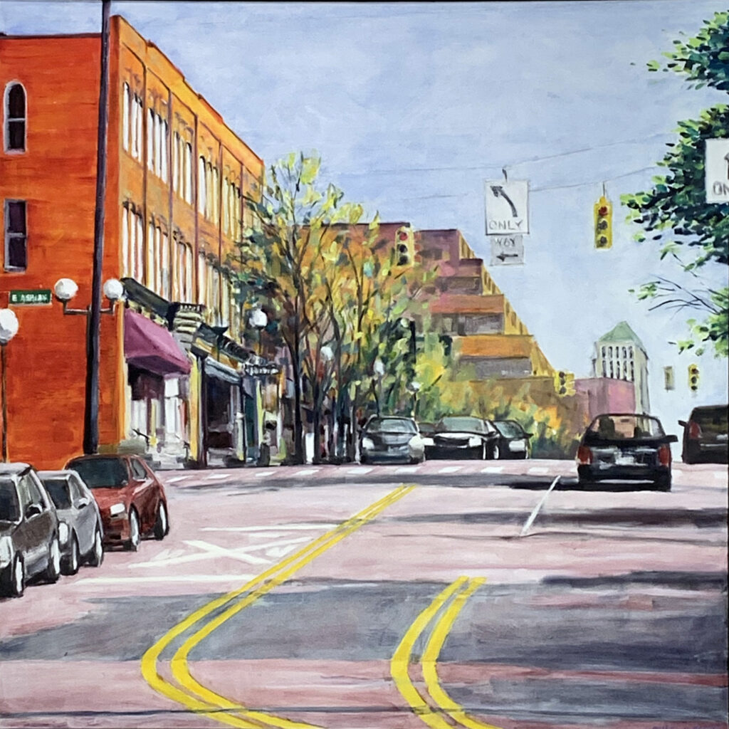 Kelley Kozloff is a self-taught painter based in Ann Arbor, Michigan. She paints with oils and cold wax medium on canvas or wood to create multi-layered and textured artwork. Following years in careers in occupational therapy and non-profit management, Kelley began painting in the fall of 2021. She loves the kinesthetic experience of creating her work and the personal connections she has developed as an artist with collectors and fellow artists. In 2023, Kelley was selected  by The Guild of Artists and Artisans as an Emerging Artist for the Ann Arbor Summer Art Fair. Kelley has exhibited at juried art fairs regularly since then; her current schedule includes Art Birmingham, the Ann Arbor Summer Art Fair, and The One of a Kind Shows in Chicago, Illinois. Over the past year, her work has been showcased in four solo exhibitions in galleries and spaces in Ann Arbor, Michigan.